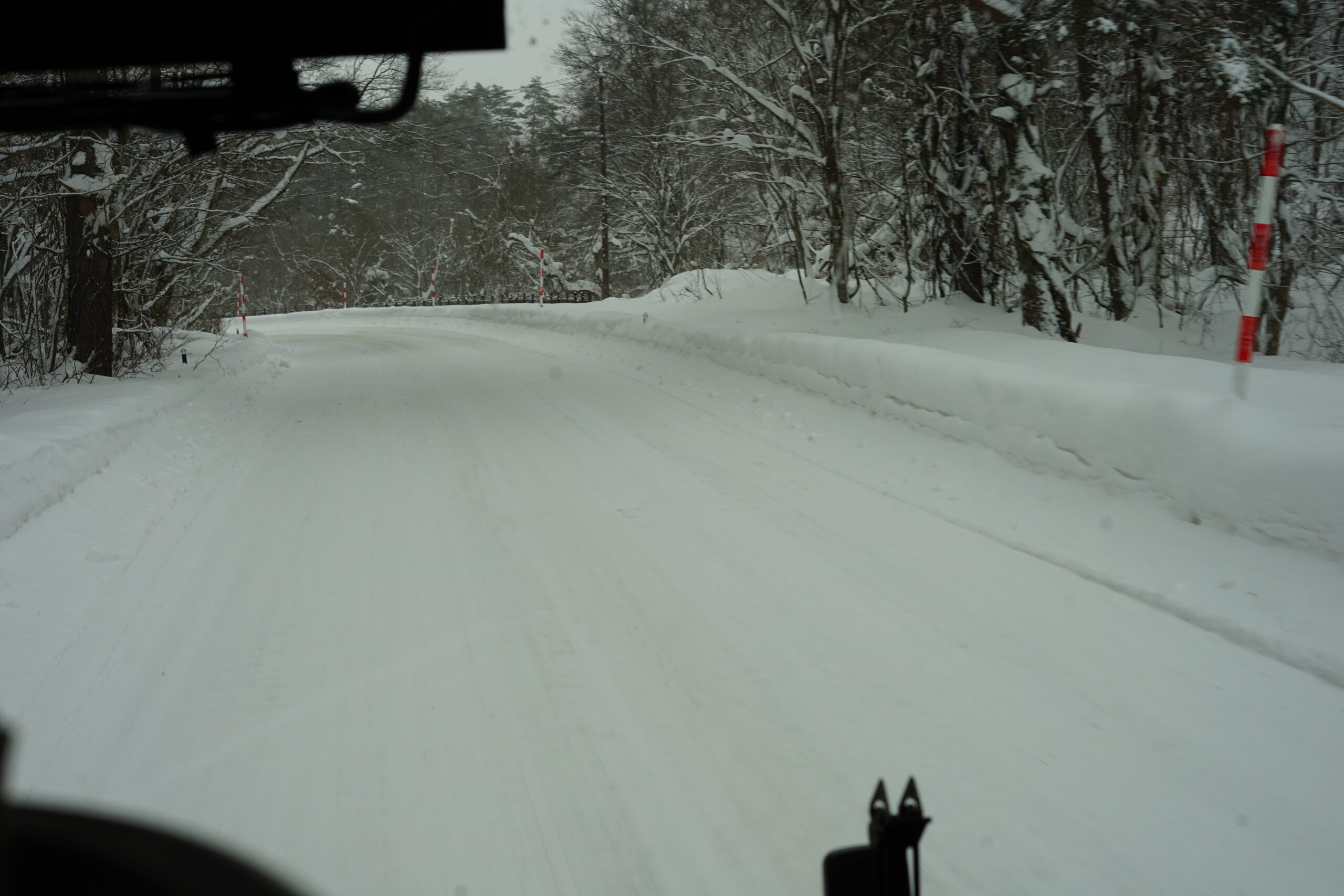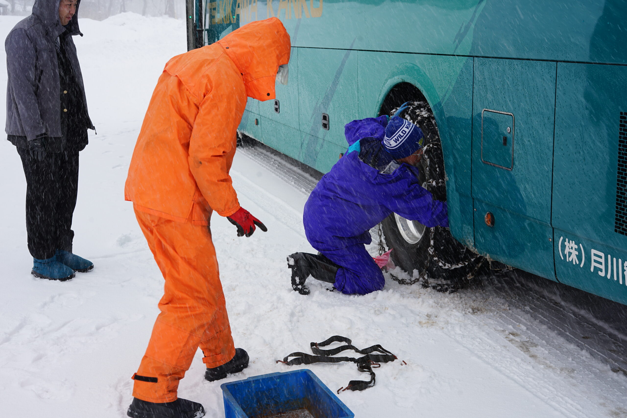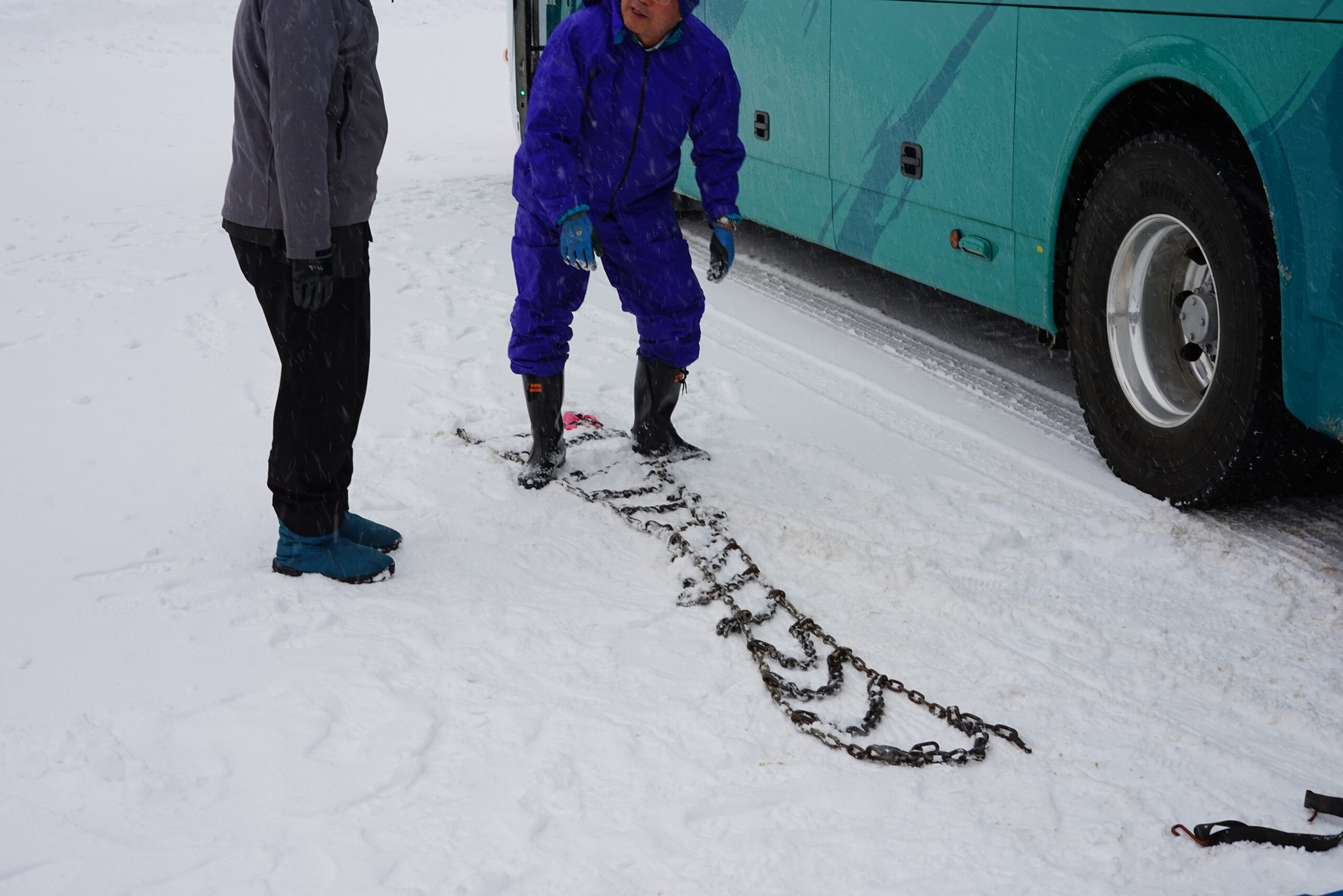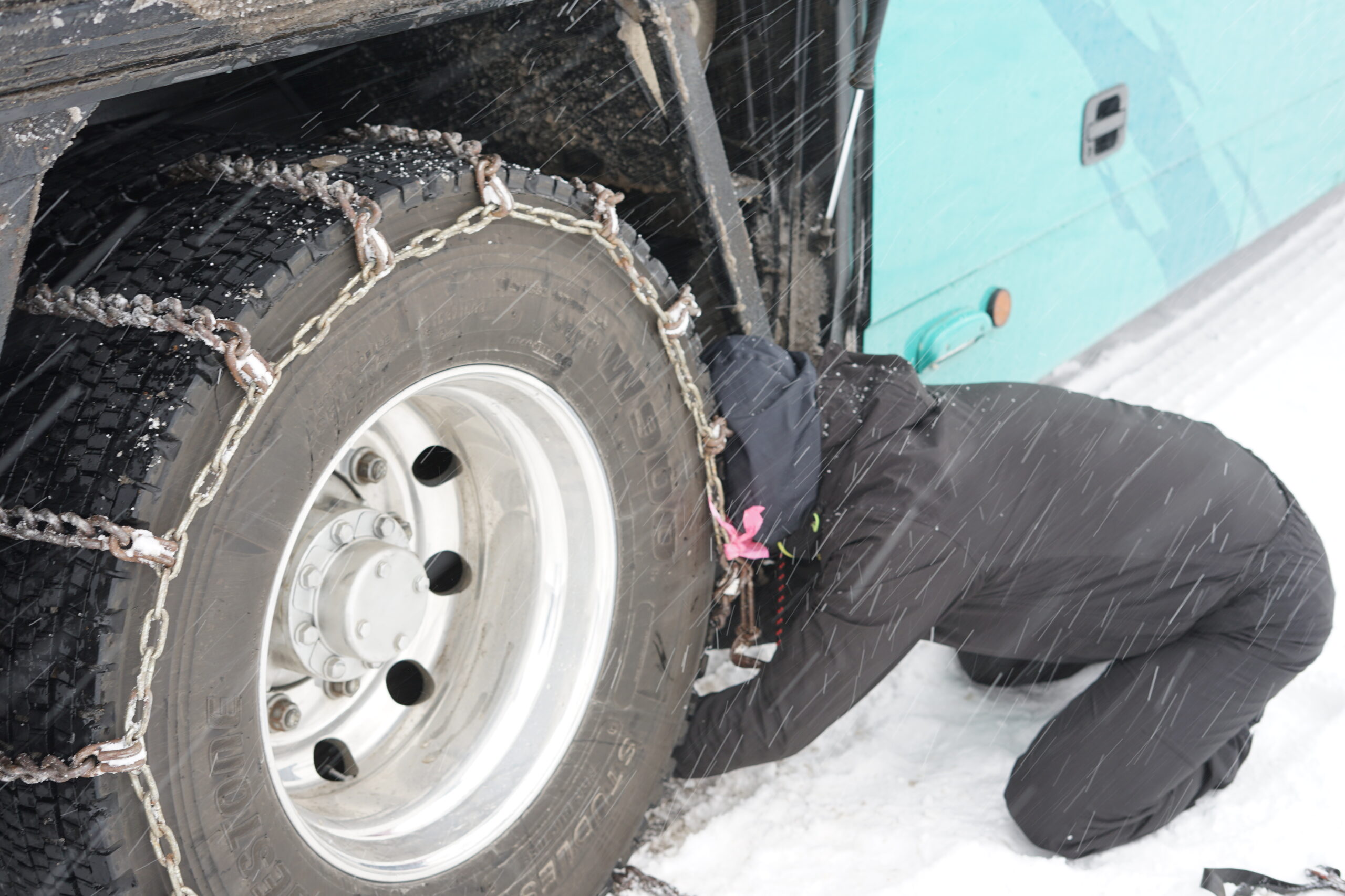 初任者を中心に雪山での走行訓練、雪上でのチェーン脱着の訓練を実施しました。
